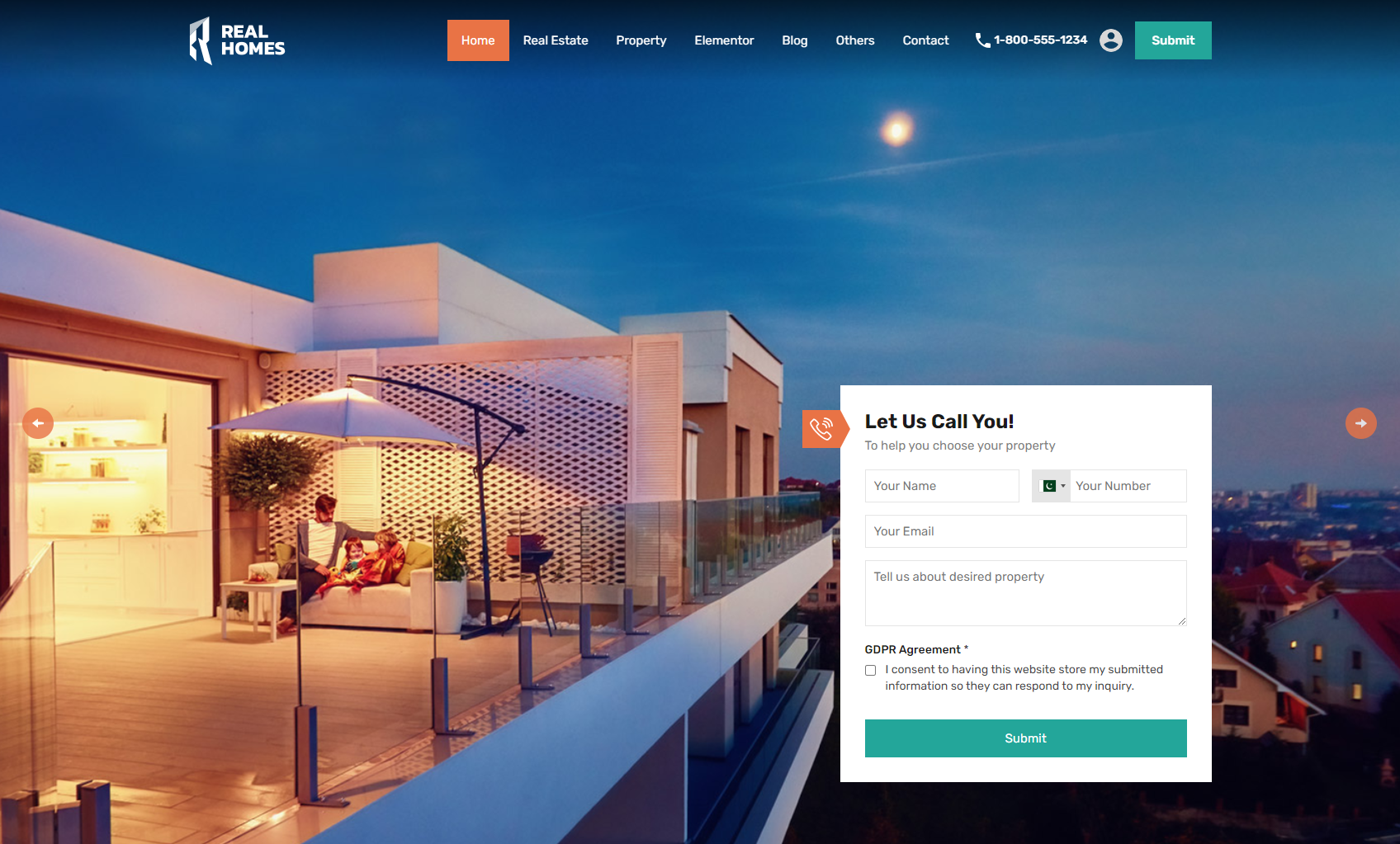 Facilitate seamless communication by incorporating a properties slider featuring a user-friendly contact form at the forefront.